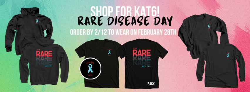 Order by February 12th to ensure your merch ships in time for you to wear on Rare Disease Day. Proceeds from this fundraiser support the KAT6 Foundation. International shipping is available!